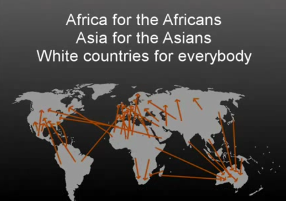 ¿Qué pasaría si yo dijera que existe un problema RACIAL y que este problema RACIAL se solucionaría solamente si cientos de millones de no-negros fueran llevados a CADA país negro y SÓLO a países negros?